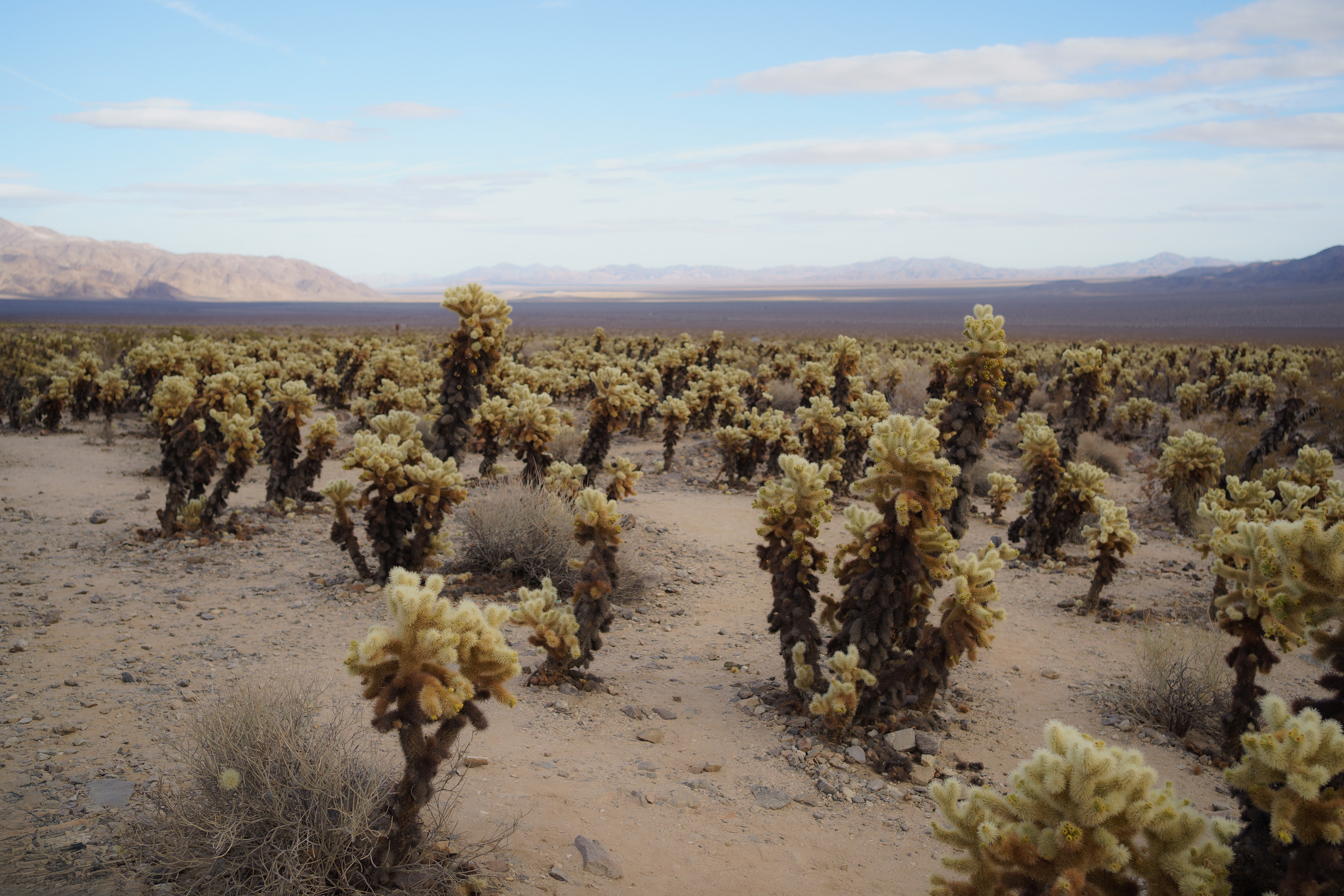A spot known for its dense concentration of Teddy Bear Cholla cacti, creating an otherworldly desert landscape.